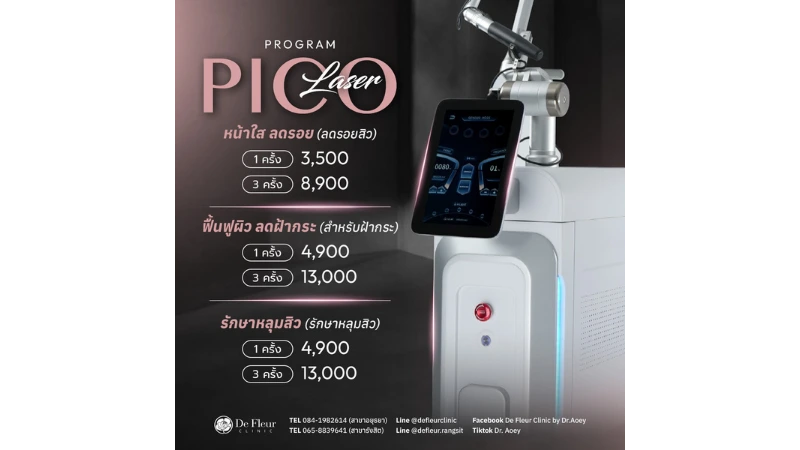 ตอนนี้ถ้าพูดถึงเรื่องรักษาฝ้า กระ งานแรกที่พุ่งขึ้นมาในหัวสาวๆ คงหนีไม่พ้น Picosecond Laser เพราะกระแสมันแรงจริงๆ ไปไหนก็เจอแต่คนพูดถึง ทั้งรีวิวในโซเชียล แต่จะเชื่อได้ไหม? มันดีจริงหรอ? defleur clinic ไม่พลาด เราเอาข้อมูลจริงมาวางให้ดูกันเลยค่ะ ทั้งหลักการทำงาน ผลลัพธ์ที่ควรคาดหวัง และว่าต้องทำกี่ครั้งถึงจะเห็นความเปลี่ยนแปลงชัดๆ