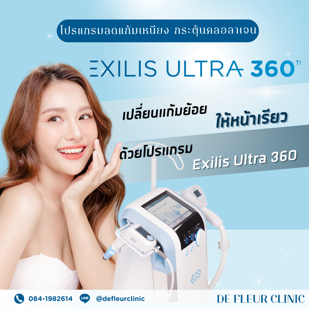 Exilis Ultra 360 เป็นเครื่องยกกระชับผิวที่ใช้เทคโนโลยี คลื่นวิทยุ (RF) ร่วมกับ คลื่นอัลตราซาวด์ (Ultrasound) ซึ่งช่วยให้พลังงานสามารถลงลึกถึงชั้นไขมันและคอลลาเจนใต้ผิวหนัง เพื่อกระตุ้นการสร้างคอลลาเจนใหม่และสลายไขมันสะสมในจุดเล็ก ๆ ได้ในเวลาเดียวกันเป็นเจเนอเรชันใหม่ล่าสุด ที่ออกแบบให้ ปรับระดับพลังงานได้อย่างแม่นยำ และปลอดภัย เหมาะกับบริเวณผิวที่บอบบาง เช่น ใบหน้า รอบดวงตา และลำคอ