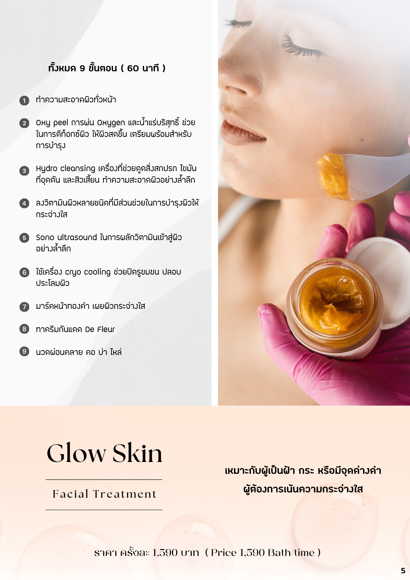 - Oxy peel การพ่น Oxygen และน้ำแร่ ช่วยในการดีท็อกซ์ผิว ให้ผิว สดชื้น เตรียมพร้อมสำหรับการบำรุงขั้นตอนต่อไป