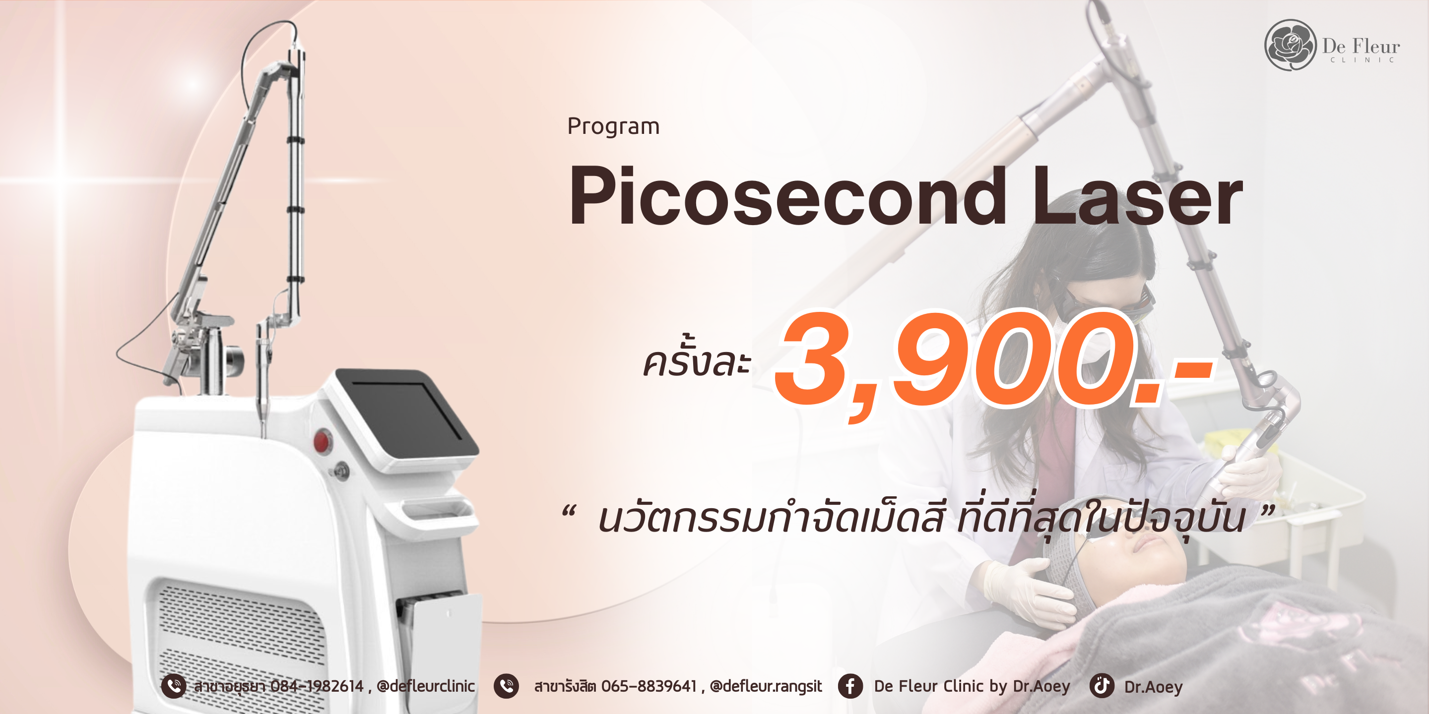 Picosecond Laser (เลเซอร์พิโค) คือเทคโนโลยีเลเซอร์ความเร็วสูงที่ปล่อยพลังงานในหน่วย Picosecond (หนึ่งในล้านล้านวินาที) ทำให้พลังงานถูกส่งไปยังเป้าหมายอย่างรวดเร็วและแม่นยำ จนเม็ดสีแตกตัวเป็นอนุภาคขนาดเล็กมากกว่าการยิงด้วยเลเซอร์แบบเก่า (Nanosecond) จึงช่วยให้ร่างกายสามารถกำจัดเม็ดสีที่แตกตัวออกไปได้ง่ายขึ้น